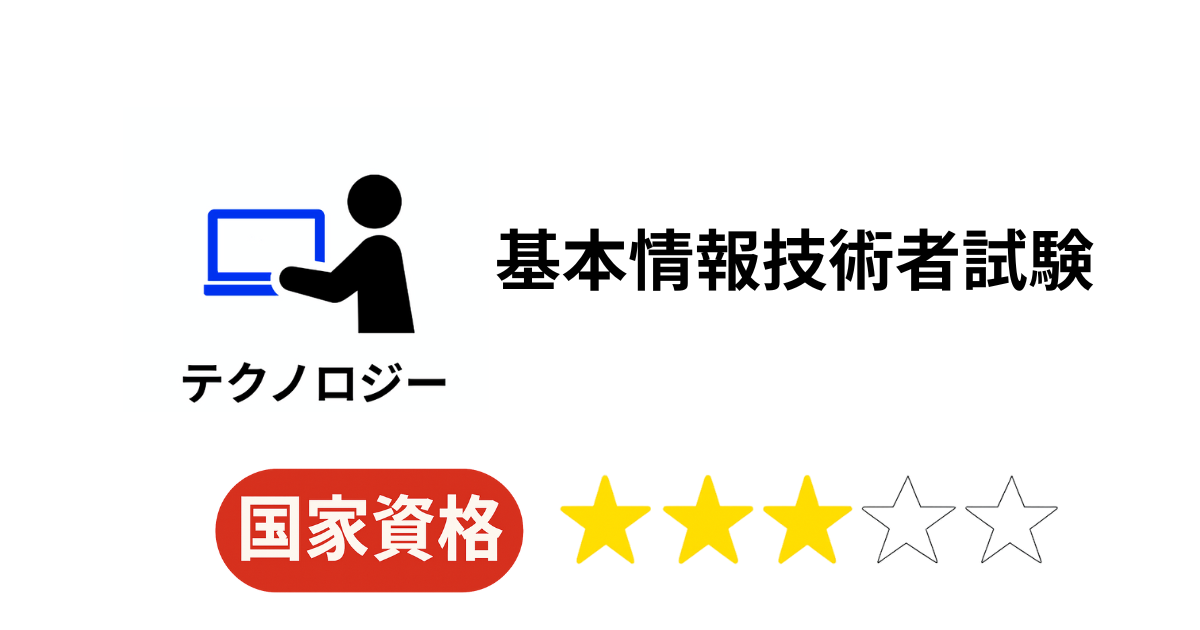 | 難易度 | 国家資格として中級レベル。 ITパスポートより難しく、応用情報よりは易しい。 プログラミング未経験者にはやや難関。 |