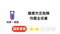 労働安全衛生法に基づく国家資格です。 シンナー・トルエン・キシレンなどの有機溶剤を扱う作業では、 中毒・引火・爆発などの危険があるため主任者の選任が義務付けられています。 |